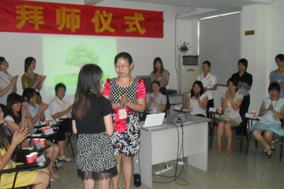 在欢快的音乐伴奏中,拜师仪式开始了,林董事长首先做了鼓舞人心的发言,阐明了公司的价值观:企业与客户双赢的经营方针,尊师重学的学习风气,团结互助关注成果的工作风气,孝敬父母关爱他人的良好品质。在这个价值观基础上发展起来的企业文化,才是公司的核心竞争力,希望每一位员工能够获得一份优厚的薪水之外,同时成为一个善于学习的人,成为团结他人的人,成为一个尊敬师长孝敬父母的人,最终成为一个受人尊重的人,这时我们企业的使命,拜师仪式,虽然只是一个仪式,但只要我们重视仪式,全身心的投入到仪式中,我们就能获得回报,我们就能改变我们的本质。